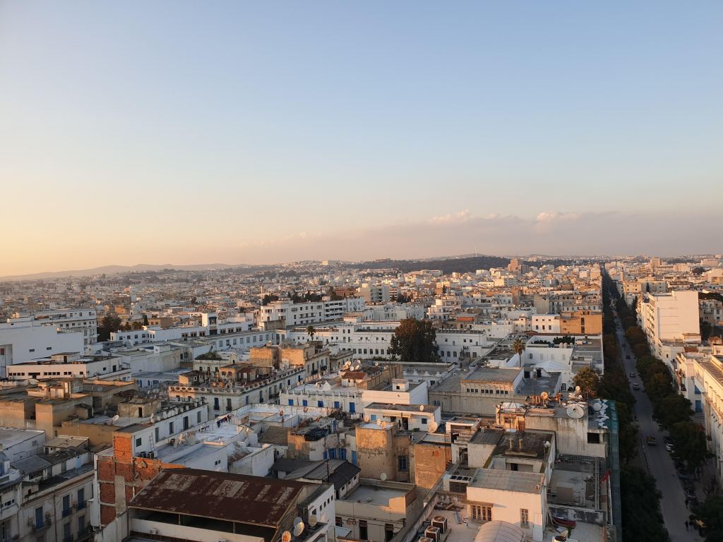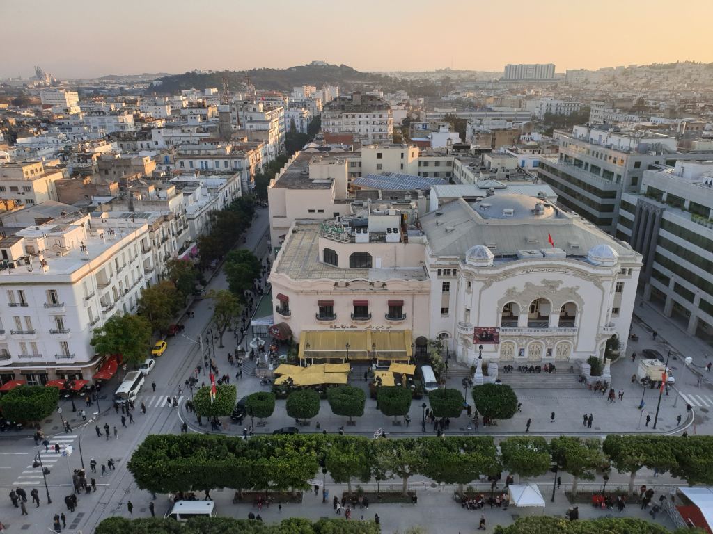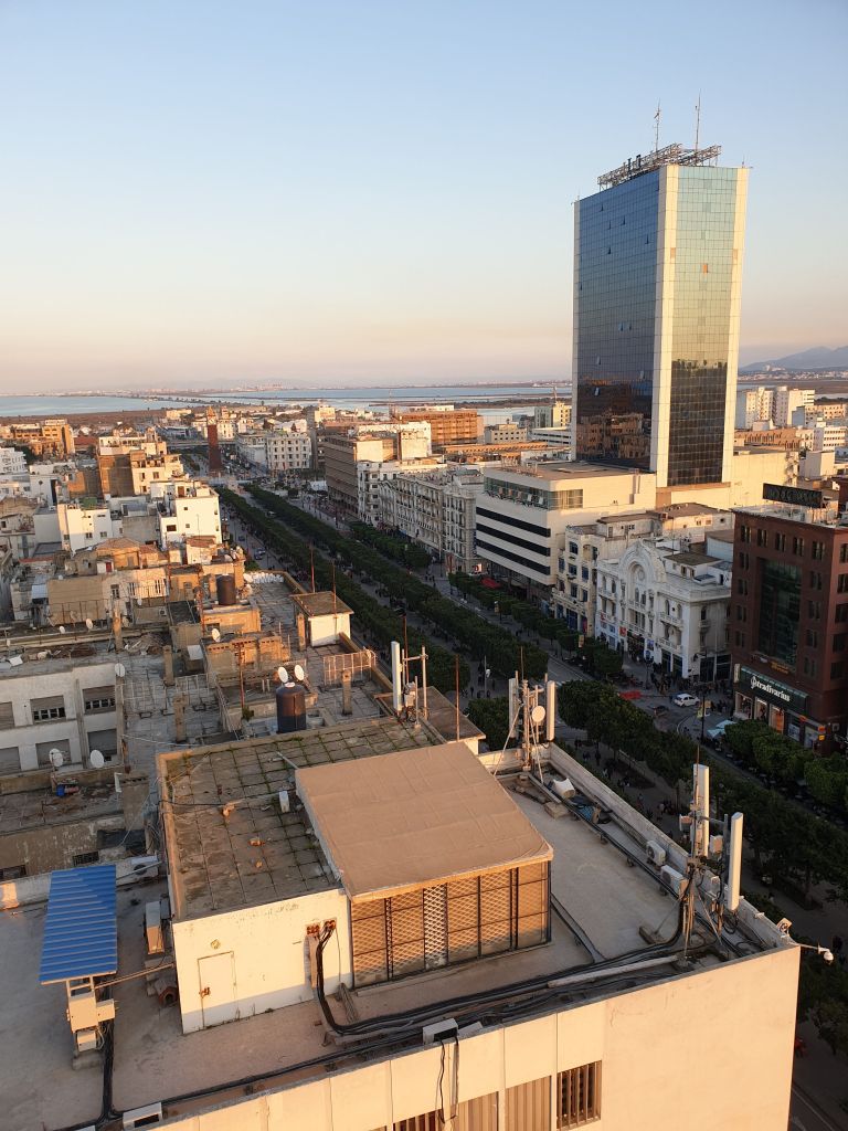 After the museum tour, we headed to a roof top bar -it’s called Jamaica- and the whole building (it’s a hotel, actually) along with elevators and the bar itself reminded me of the 1980s. It was a weird yet interesting place where I was able to see the main avenue in Tunis (Habib Bourgiba Avenue) from the top of a 12 floors building, wasn’t a bad view at all.