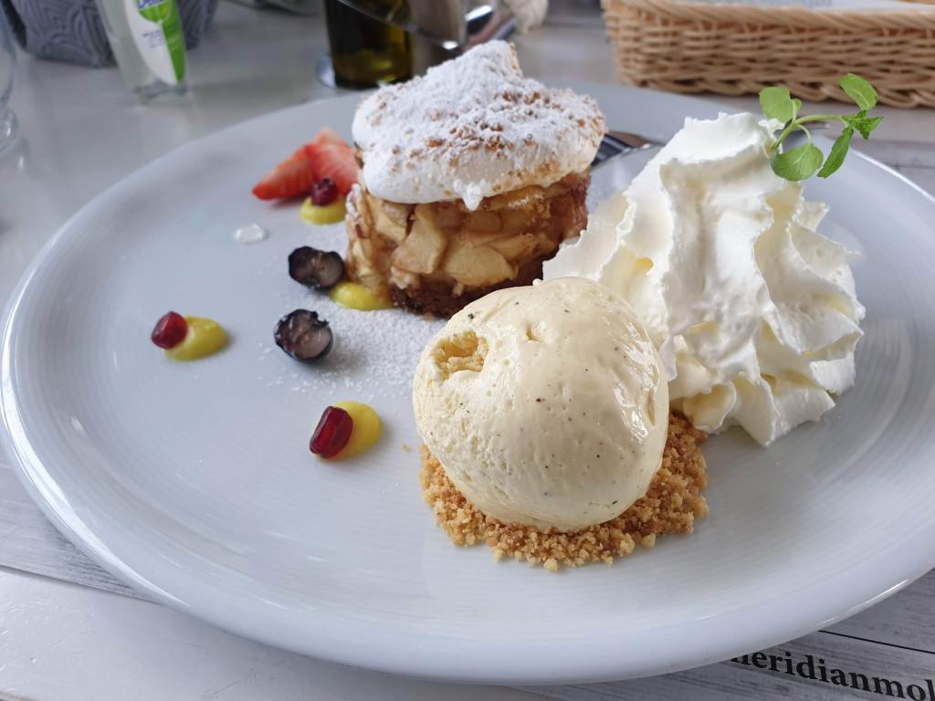 The walk on pier was beautiful and at the end of it, there is a very nice restaurant called Meridian Molo. We made a stop there and had a delicious apple pie.