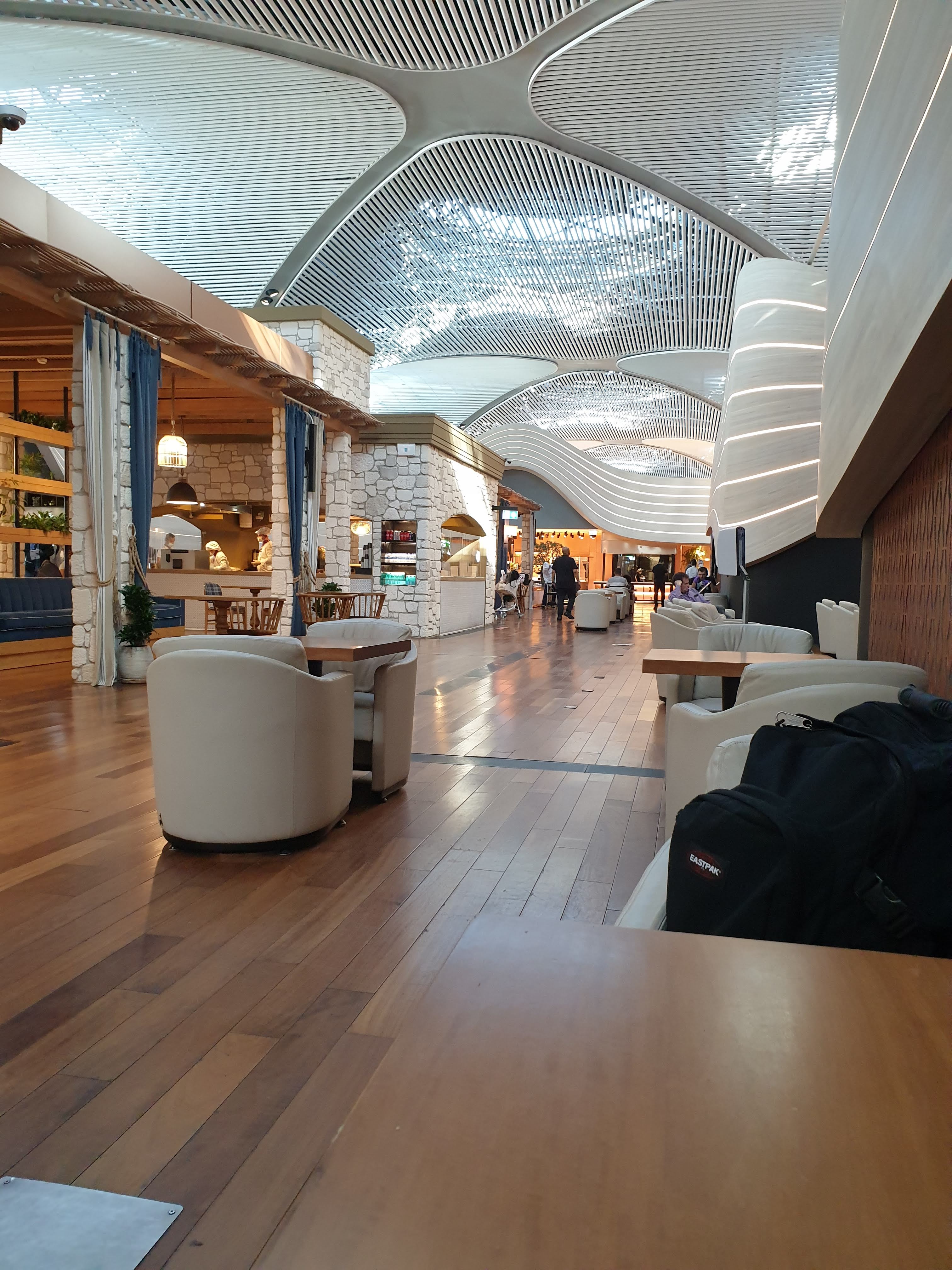 I heard a lot about Turkish Airlines business lounge so I had very high expectations. Prior to COVID pandemic, this lounge was supposed to be one the best airport lounges on the planet; It has private sleeping rooms, seating areas, shower rooms, rest areas, library, art gallery, video game stations, virtual golf, kids’ play area, self service liquor cart, in addition to all the delicious Turkish and International food and desserts you can think of.