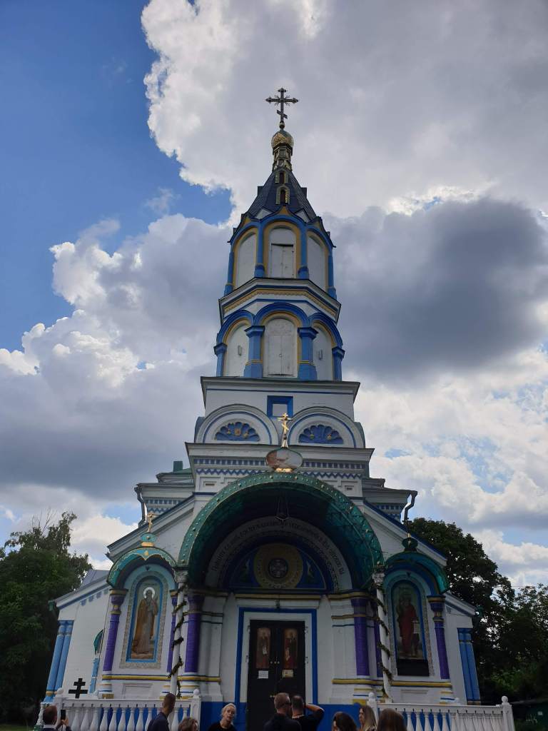 We were supposed to drive closer to Chernobyl reactor number 4 and Pripyat -where the most interesting part of the trip is- but we were told that we couldn’t enter the area until 3 pm. As a result, we had around 2 extra hours to spend and that gave us the chance to visit some sites which were not planned in our tour. We had a delightful visit to the house of one of Chernobyl residents who returned to the area after the evacuation and who refused to leave her home since then. She’s 82 years old and she’s in good health despite living in a radioactive area for more than 30 years. She even survived Covid a few months ago. She showed us some incredible and generous Soviet/Ukrainian/Russian hospitality by offering us a lot of food and she even played the accordion for us along with her crazy singing dog. The warmth and even the smell of her home reminded me of my grandmother’s house in Palestine. Looks like grandmothers from Ukraine, Russia, or Palestine have a lot in common.