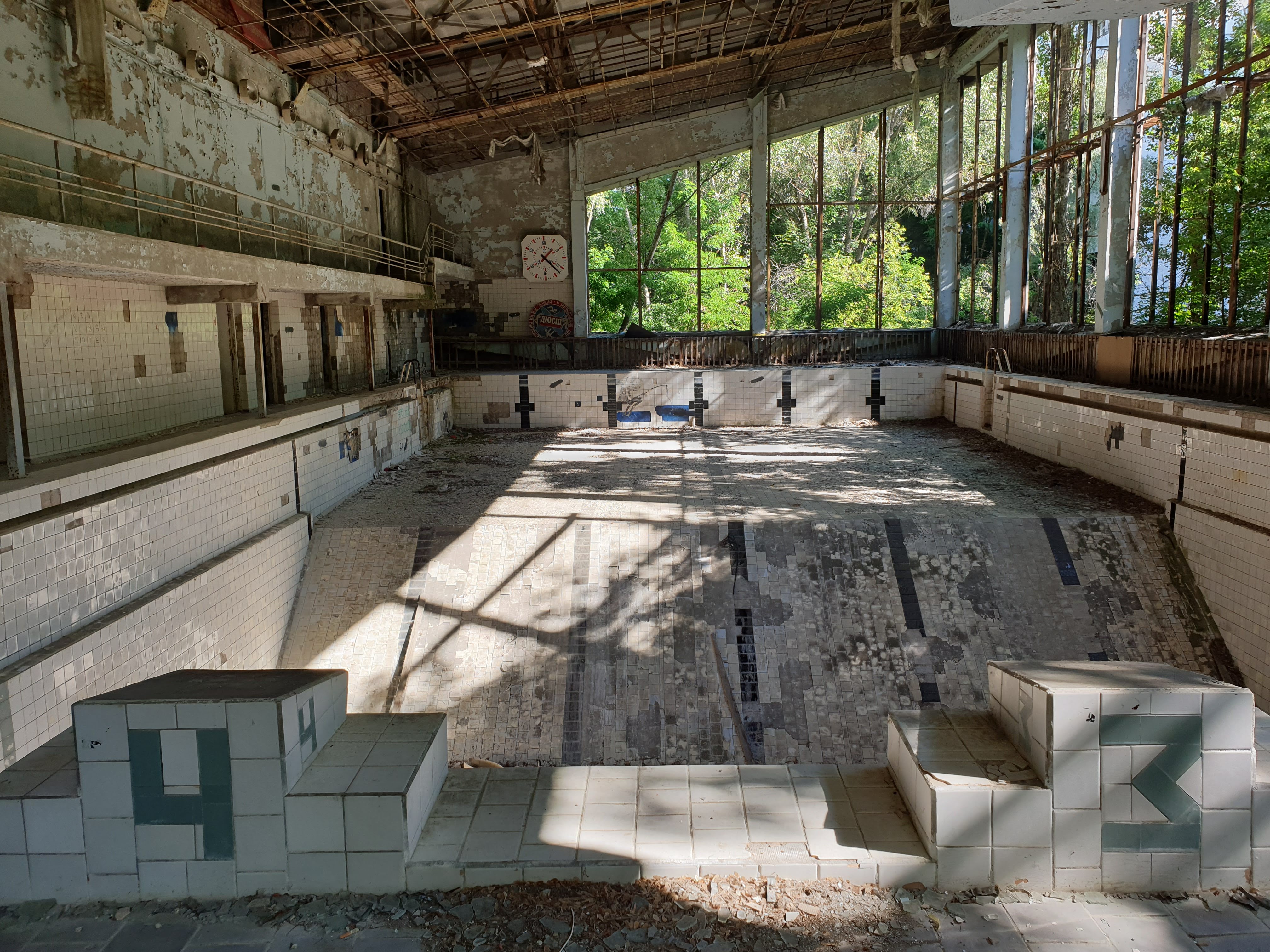 We started the tour in the city with a visit to a building (I believe it’s a school) that has a gym and an Olympic size swimming pool inside it. The swimming pool was still in use by liquidators until 1996, a decade after the disaster.