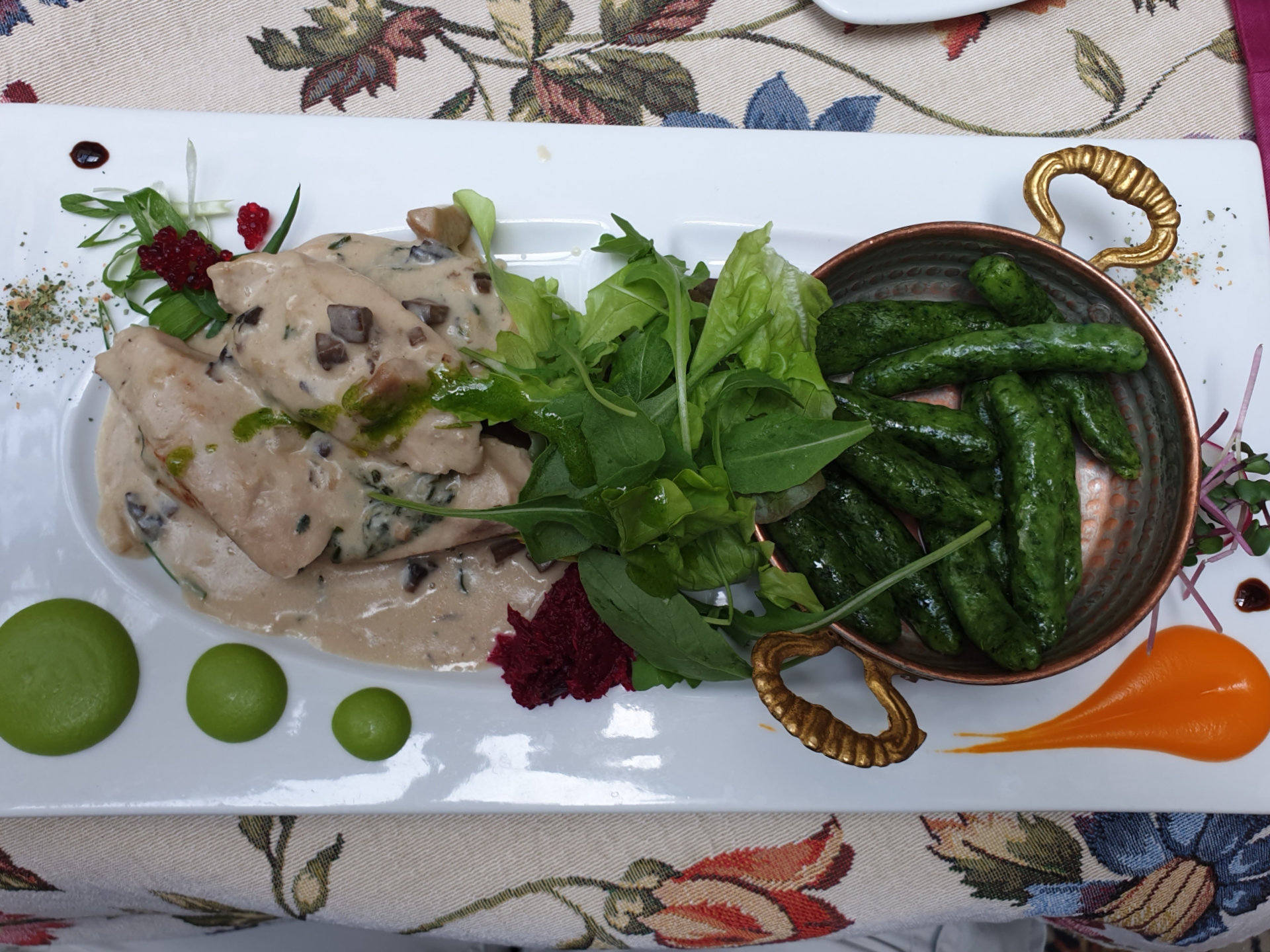 The experience at this restaurant Baczewski was out of this world. If I have to describe this restaurant with one word, I would call it “elegant”. The service was one of the most professional and most attentive I’ve ever seen and the taste of the food was simply outstanding and delectable. Not only the food was amazing but also the decoration and the atmosphere inside the restaurant. Everything we ordered looked great and tasted even greater. I had a Lviv-style coffee, Lviv-style salad called Miseria salad, and Turkey with spinach and mushroom sauce for main dish while Yulia had 2 vegetarian dishes as she’s a vegetarian. We were so delighted of the experience. We were lucky to eat in this restaurant as lines are often long throughout the day and I must admit that without her, I wouldn’t have been able to discover this charming place.