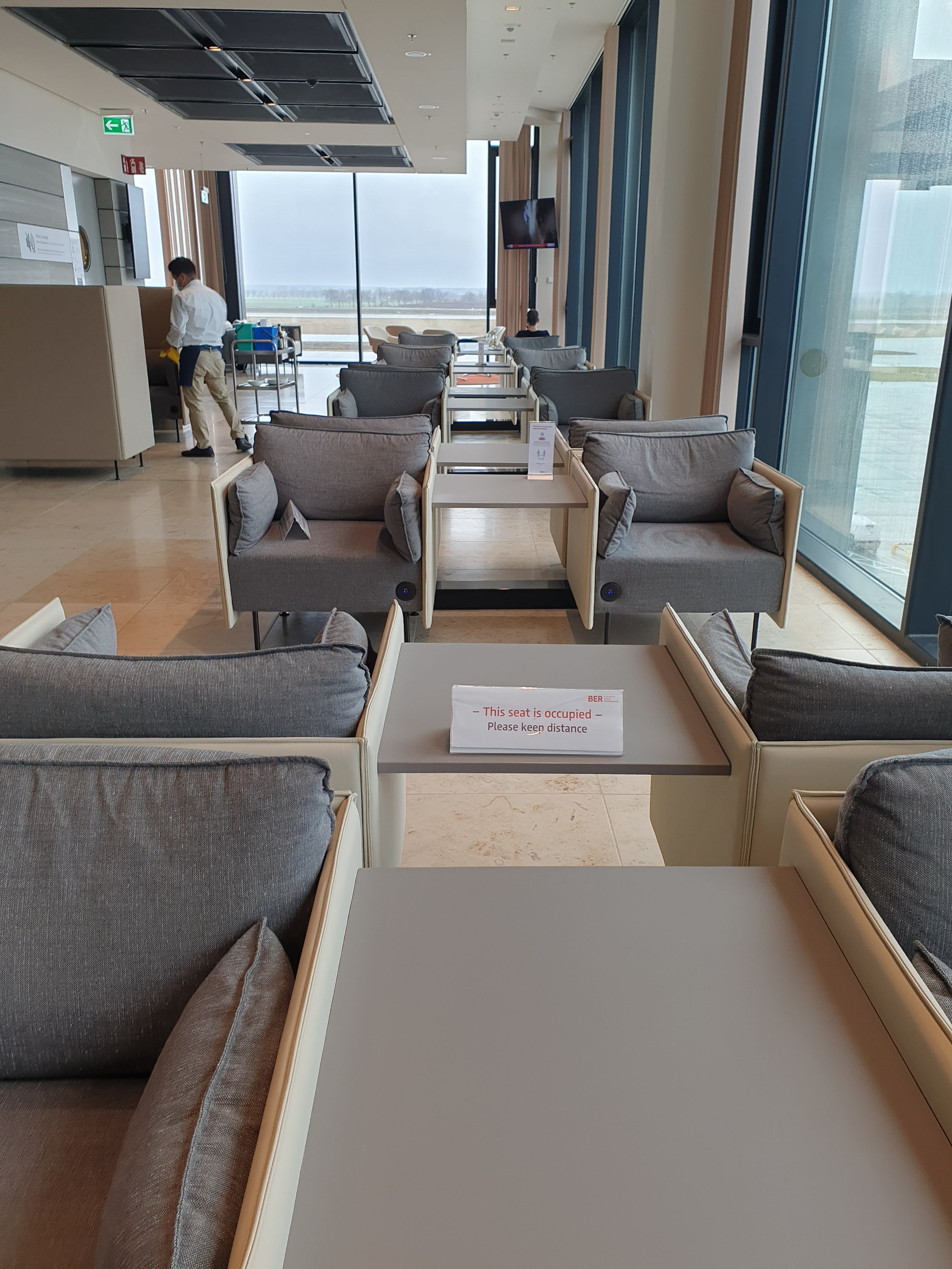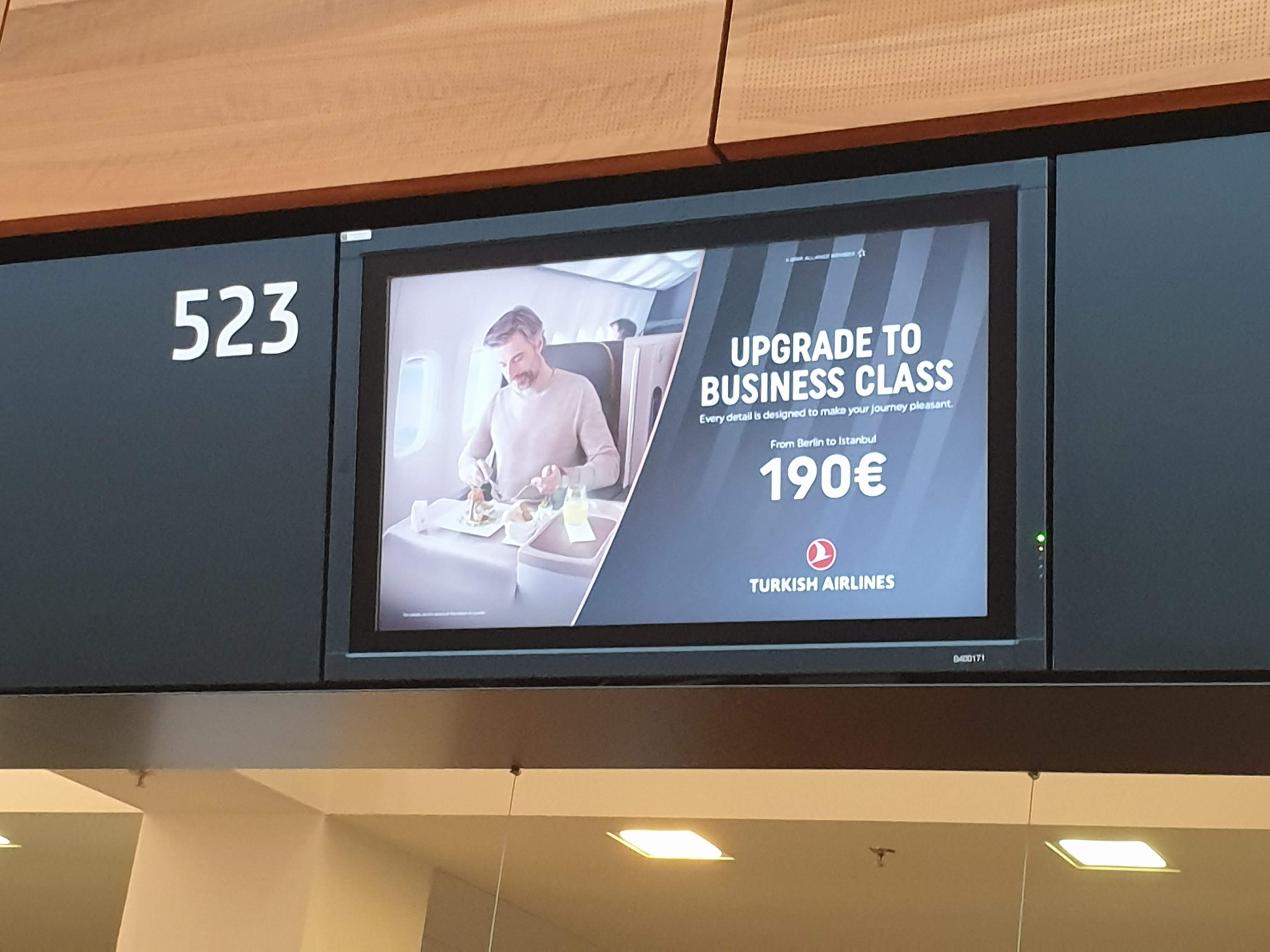 Back to the main story of this blog, I was standing in the economy check-in counter, waiting for my turn to check-in and then I noticed something on the screen right above the check-in counter; they were offering an upgrade to business class from Berlin to Istanbul which is a 2.5 hours flight for 190 Euros ($217 USD). I was not planning to fly on business but I gave it a quick thought and did some calculations in my head and realized that it’s a golden opportunity to hit multiple birds with one stone; 1. it’s a very good price for a business class seat 2. I will be amongst the first people to exit the plane in Istanbul and that will give me a good chance to catch my connecting flight as I had only 1 hour layover 3. It’s an opportunity to minimize the contact with other passengers 4. It’s a good content for my blog. All these reasons encouraged me to go ahead and upgrade and I am so glad I did so. I received my boarding card and a lounge access to Lounge Tempelhof, which is the only lounge in this new airport.