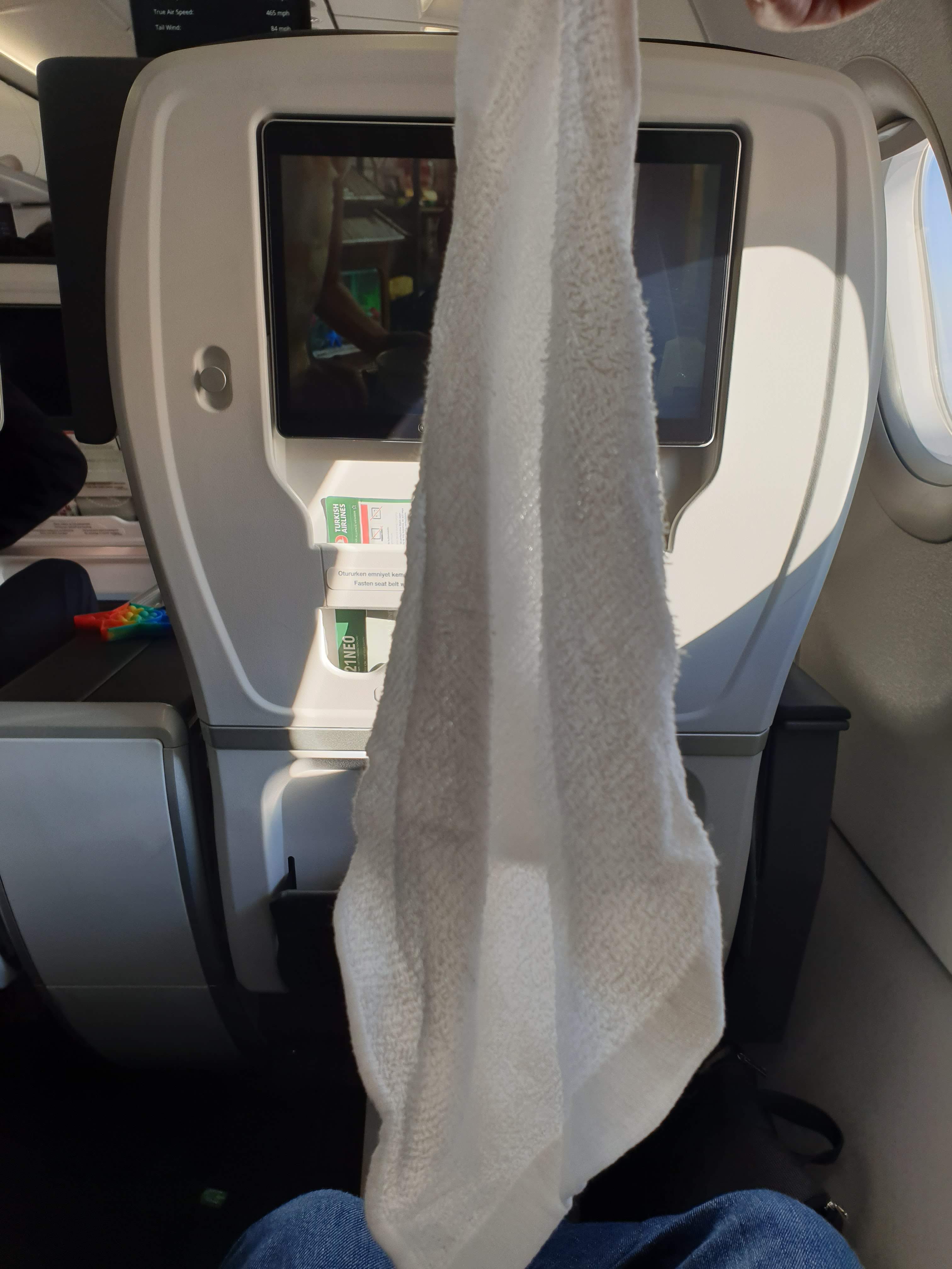 Shortly after take off, cabin crew handed me a hot towel; applying it on my face and head brought to me a great feeling of refreshing and even relaxation. A moment later, the flight attendant distributed high quality noise cancelling headphones. I wanted to try the headphones so I started to watch “Shang-Chi and the Legend of the Ten Rings” but I didn’t finish it as I started to lose the interest about 30 minutes into the movie.