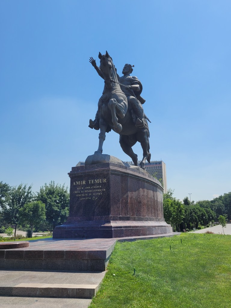 Right next to the hotel, there’s a statue of Amir Timur (it replaced Karl Marx’s statue after the fall of communism). Timur who is known in the West as Timur Lang and in the Arab World as تيمورلنك was a Turco-Mongol conqueror who conquered lands from Central Asia to India and from Persia to Anatolia and the Middle East. Timur shared common ancestors with Ghenghis Khan. His military campaigns killed about 17 million people (5% of the world population at the time). When he conquered Baghdad, Aleppo, Isfahan, Damascus, and many other cities, he built towers constructed of 1,500 heads each. He’s a hero in Uzbekistan but in Arabic literature, he’s a conqueror who brought a lot of terror and fear to Arab lands.