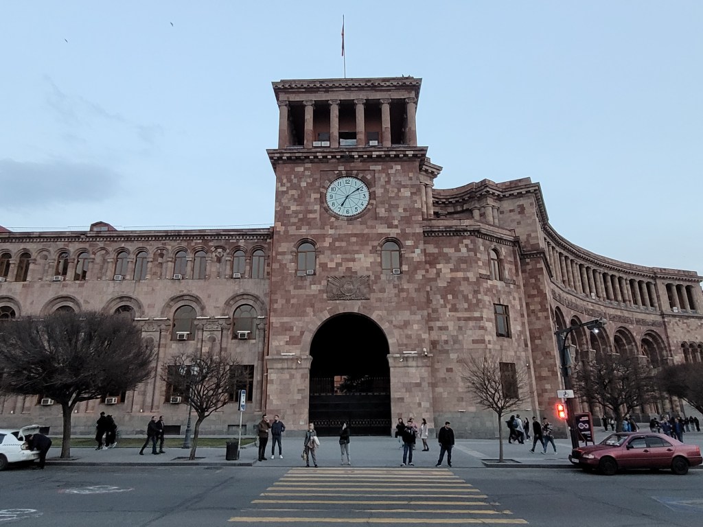 The square is surrounded by five major buildings built in pink and red tuff (tuff is a type of rock made of volcanic ash that is used extensively in Armenia) in the neoclassical style with the use of Armenian motifs. I simply loved the energy of the place and the colours of the buildings. I even kept repeating that while talking to m friends there over and over.
