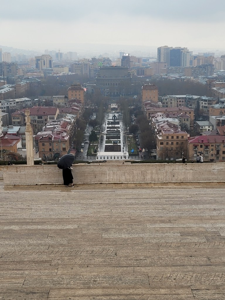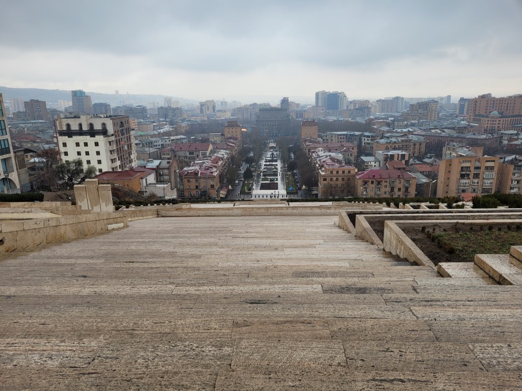 The Cascade is another must-visit site in Yerevan. It’s a giant stairway made of limestone. The first phase of it was completed in 1980 during the Soviet era while the second phase was completed in 2009. There’re beautiful views of central Yerevan and Mount Ararat from the top of the stairway. However, I couldn’t see Mount Ararat that day because of the cloudy and rainy weather. At the base of the Cascade is a garden courtyard with statues by contemporary sculptors. It’s a nice place to check out, especially if you’re into Soviet-style architecture.