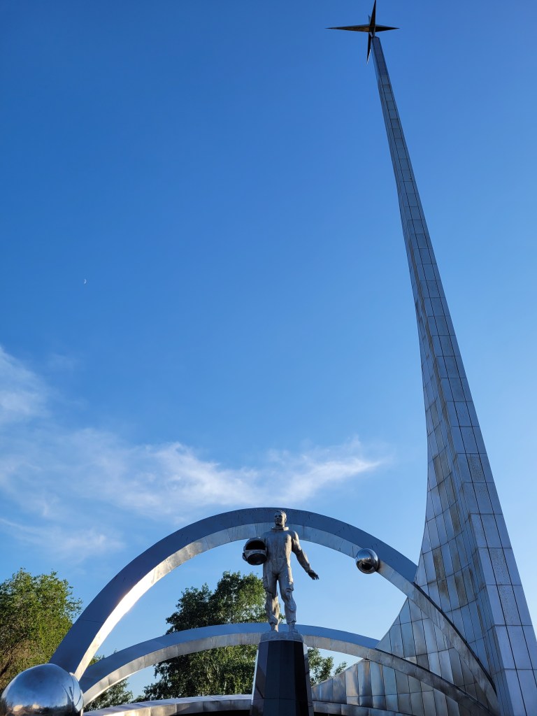 Later on, I made a stop to visit the Gagarin monument in Karaganda. It’s truly remarkable how the achievements of the Soviet Union’s space exploration continue to be celebrated across the former Soviet lands to this day. If we were to survey former Soviet citizens about the most iconic figure from that era, I’m confident that the majority would choose “Gagarin”. The monument is truly spectacular and a joy to behold. After admiring it for a few minutes, I took advantage of the opportunity of being there next to it and I asked my friend to take a photo of me standing beside it.
