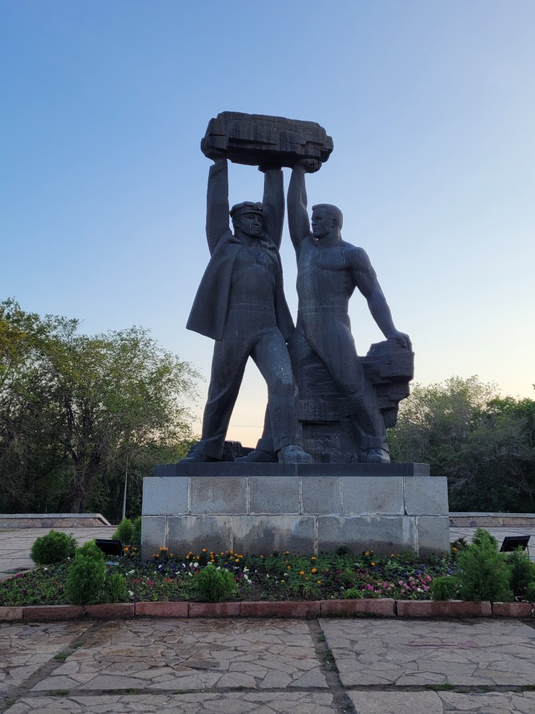 Right next to these mosaics, there was an iconic landmark of the city, which is, the miner’s glory monument. The monument which was erected in 1974, in honour of 2 million tons of coal production in Karaganda, became later the symbol of the city.