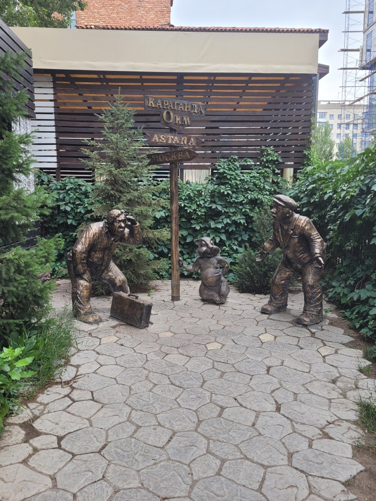 Gde-Gde? V Karagande! is a rhythmic phrase in the Russian language that translates to “Where-where? In Karaganda! It’s a catchphrase to refer to something situated in a remote and isolated location, far away from civilization or any significant surroundings. The monument won a certificate from the Guinness World Records for being the world’s first monument to a catchphrase! It’s a funny phrase and the monument is even funnier, It’s located on the territory of one of the city’s restaurants that is called Traktir Tri Medvedya. Note that you don’t need to eat at the restaurant to visit the monument.