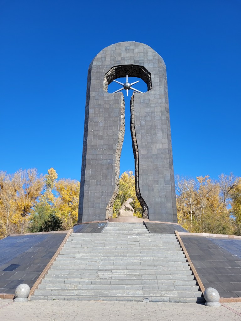 it was time to visit ‘The Stronger Than Death’ monument. Standing at a height of 30 meters, the monument honors the victims of more than 40 years of nuclear tests at the Semipalatinsk nuclear testing site. It is a moving and powerful symbol, representing the impact of nuclear testing on the local population and the enduring strength of the people in the face of such tragedy.