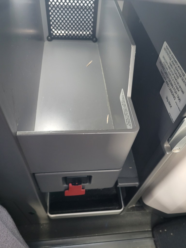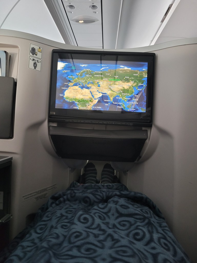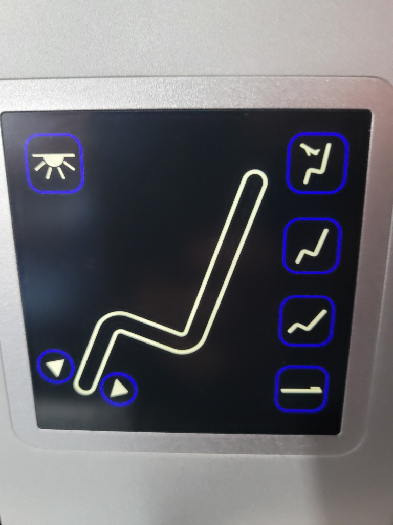 There’s an elegant reading light, noise-cancelling headphones, a universal power socket, an amazingly bright and crisp screen with inflight entertainment, and plenty of storage space. I took some photos, and then I was waiting for the pre-flight service to start.