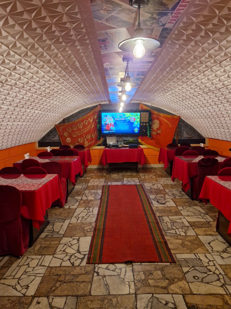 The nostalgic Soviet music playing in the background, combined with the dim lighting and retro furnishings, adds to the immersive experience. Even if you didnโ€™t live through the Soviet era, you canโ€™t help but feel a sense of history all around you. Itโ€™s a truly special spot that offers a unique glimpse into an era many people still nostalgic about.